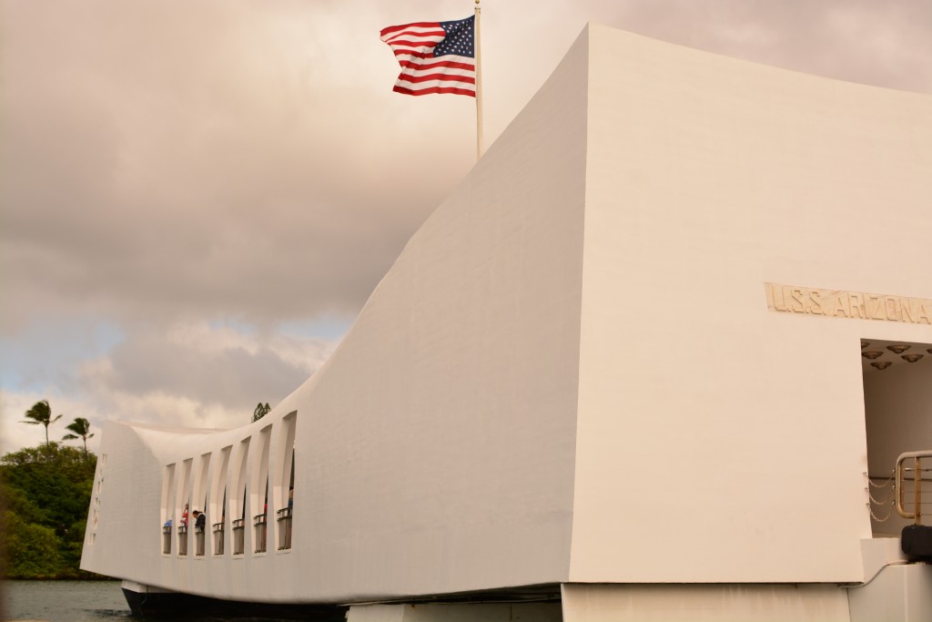 今でも海に沈んだままになっているアリゾナ号の上に建てられているアリゾナ記念碑。