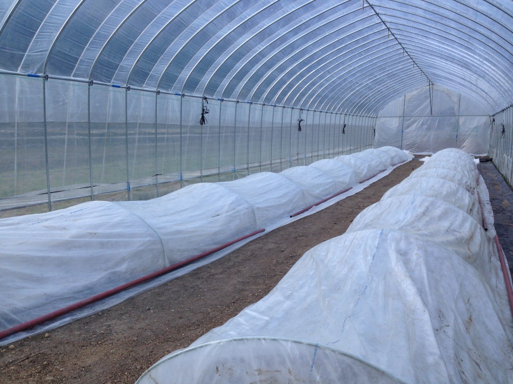不織布とビニールをかけます。